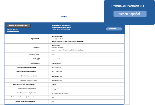 Choose an audit that fully covers the scope of operations in your supply chain, from the farm level to facilities, providing an integrated supply chain approach. Save valuable time by centralizing your PrimusGFS audits in one platform, allowing you to seamlessly transfer your data to your customers.