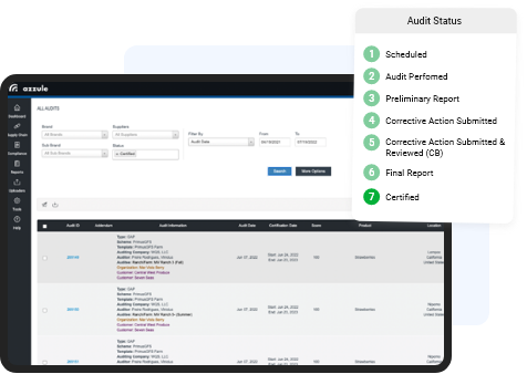 Join a vast network of over 15,000 clients who trust Azzule with their data and compliance management needs. With Azzule and PrimusGFS, you can seamlessly transfer your data throughout the supply chain and promote your compliance efforts to help expand your business!